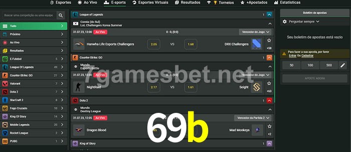 O 69b oferece uma grande seleção de opções de apostas em e-sports com probabilidades competitivas
